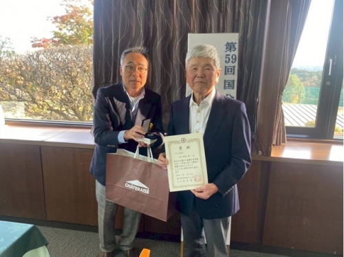 今年は男女混合の個人戦(新ペリア方式)で競技を行い、1位から3位までの入賞、男女別ベストスコア賞、ニアピン賞、そして今年新たに飛び賞を設けて表彰を行いました。優勝はグロス79、ネット69.4の髙橋隆さん👑。男子のベストスコア賞とダブル受賞となりました。