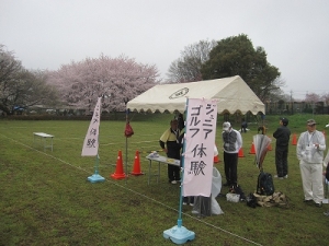 4月9日(日)、国分寺史跡公園にて第34回国分寺市万葉花祭りが開催されました。我がゴルフ協会とターゲットバードゴルフ協会は今年も花祭りの趣旨に賛同し、訪れた子供たちのためにゴルフ体験を開催致しました。 今年はメイン会場の西側の新たな場所をお借りすることになりました。草刈も行われ、広々としたスペースに早速スタッフの方々によりパター体験とTBG体験コースが整備されました。会場に来た子供たちは早速ゴルフ体験を 見つけ、楽しそうに初めてのゴルフを楽しみました。しかし、まもなくお昼になる頃、心配されていた雨が本降りになってしまい、止む無くそこで撤収となってしまいました。今年の花まつりは傘の花咲く花祭りとなりました。 スタッフの皆様、お疲れさまでした。